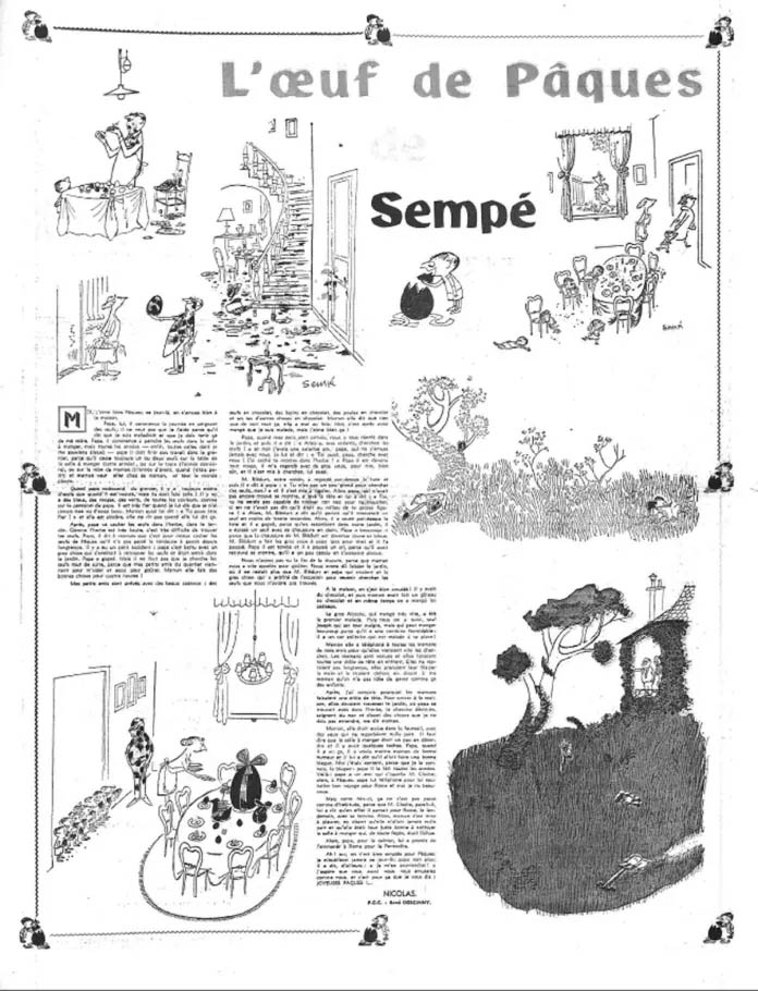 Το 1959, ο εκδότης της εφημερίδας Sud-Ouest ζήτησε από τον Goscinny μια αστεία ιστορία για την πασχαλινή έκδοση. Ο Goscinny προτείνει στον Sempé να χρησιμοποιήσουν τον Μικρό Νικόλα που είχαν τόσο σύντομα αφήσει. Εκείνος του απαντάει «Δεν μου αρέσει να κάνω κόμικ, ποτέ δεν τα διάβαζα, ποτέ δεν μου άρεσαν. Από την άλλη τα χιουμοριστικά σκίτσα πάντα με ενθουσίαζαν». Έτσι ο Goscinny αλλάζει τον τρόπο γραφής του και μετατρέπει το comic strip του Μικρού Νικόλα σε ιστορία που συνοδεύεται από σκίτσα του Sempé. Οι δύο δημιουργοί είχαν σχεδιάσει μόνο την πασχαλινή ιστορία, αλλά η ενθουσιώδης αντίδραση των αναγνωστών οδηγεί την εφημερίδα να τους ζητήσει να την συνεχίσουν. Έτσι γεννήθηκε η πιο γνωστή μορφή του Μικρό Νικόλα, όπως την ξέρουμε σήμερα, σε μορφή ιστοριών με μερικά εικονογραφημένα σκίτσα. Οι ιστορίες του, κυκλοφορούν μέχρι και το 1965, φτάνοντας συνολικά τις 222.