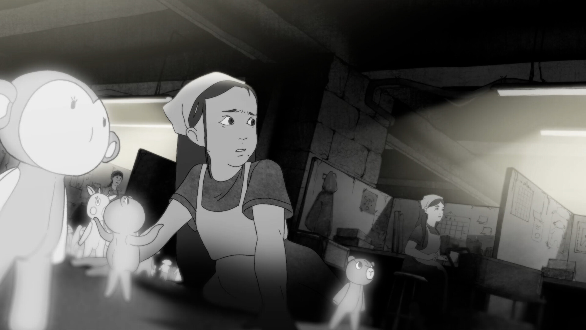 In a gloomy toy factory, the distress of a worker aged just 8 reaches such a pitch that the stuffed toys themselves come to her help. The tyranny of the factory guards and the passivity of the other workers will finally come to an end, but at the cost of blood.