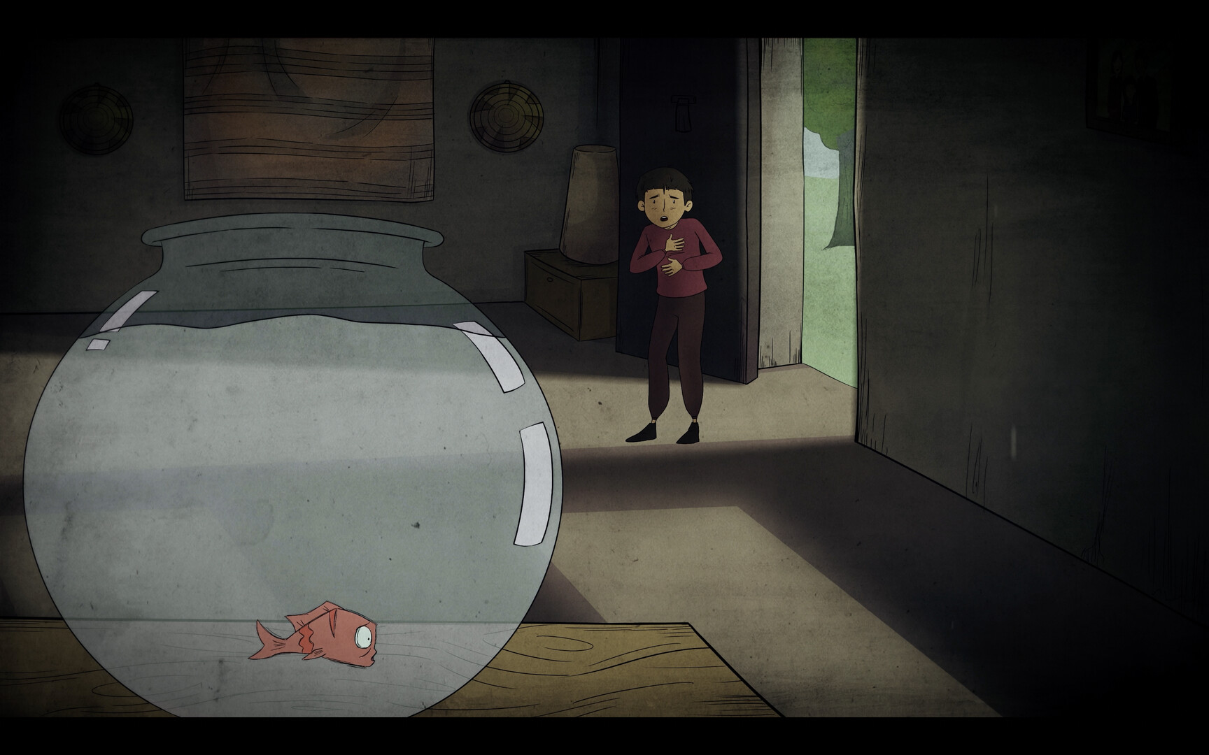 "Hide & Seek" is an animated short film that narrates the story of a child and his fish on their journey into the unknown, following the raid on the child's town during the ongoing war ravaging his country. The short film captures the steps of this journey and its transformations, concluding as the child reaches one of the coasts.